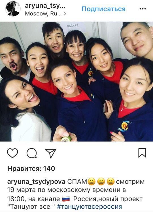 - Вот уж никогда бы не подумала, что приму участие в проекте на центральном канале, нет друзья это не «Дом-2», это танцевальный проект на телеканале «Россия»! Здесь собрались самые лучшие коллективы нашей необъятной Родины!!! Честь представлять нашу солнечную Бурятию! Милые и дорогие друзья, как никогда мы очень нуждаемся в вашей поддержке, а мы в свою очередь сделаем все для того, чтобы оказаться в финале!!! Любим вас и очень дорожим!!! – пишет в соцсетях артистка театра Валентина Юндунова.