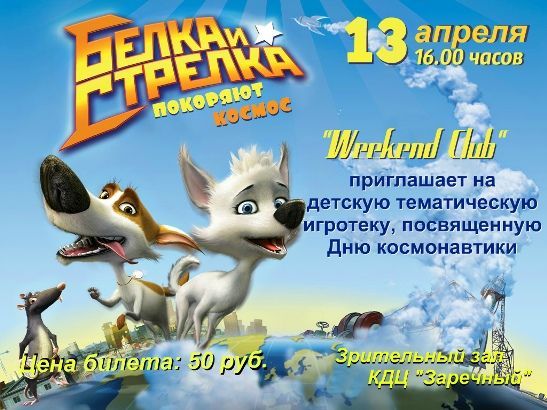 13 апреля в 16:00 - Всеми любимые Белка и Стрелка будут покорять космос!