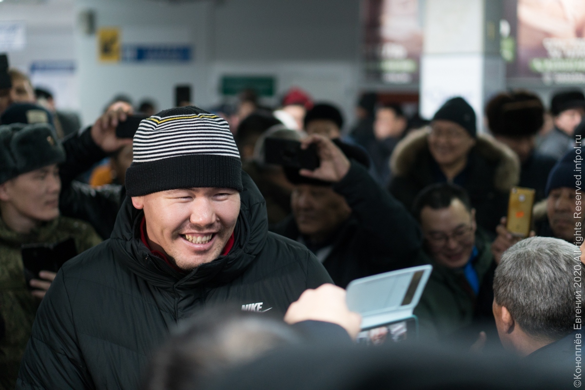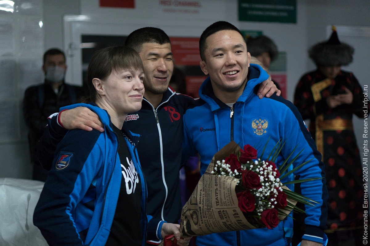 С ним также прилетели тренер Валерий Иванов и бронзовый призёр чемпионата Европы Балдан Цыжипов