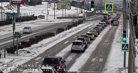 Авария заблокировала правую полосу в сторону проспекта Автомобилистов и спровоцировала пробку