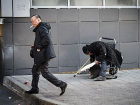 Охранники торгового центра «Гэлакси» несколько лет борются с бездомными, собирающим милостыню на их территории. По словам одного из таких граждан, «холодная война» привела к тому, что у него уже во второй раз отбирают инвалидное кресло, воспользовавшись его беспомощностью