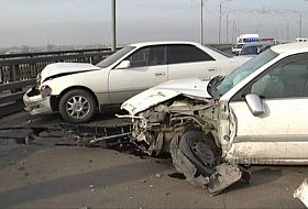 Там столкнулись три автомобиля. Они полностью перегородили движение по направлению в центр города