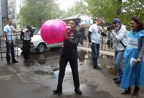 20 мая около ФКУ Упрдор «Южный Байкал» состоялась необычная акция против коррупции в сфере дорожного строительства (видео)