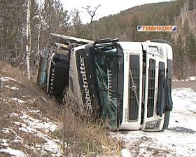 ДТП произошло на спуске с перевала Мандрик. Многотонный грузовик «Volvo» с регистрационными номерами республики Монголия перевозил пиво