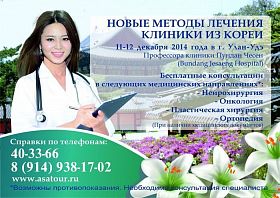 Внимание! Только 11-12 декабря в г. Улан-Удэ бесплатная консультация профессоров из Кореи в следующих медицинских направлениях: