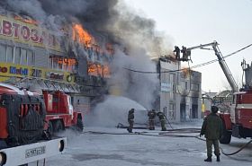 Тушение пожара осложняется горением ГСМ, произошло обрушение кровли ВИДЕО