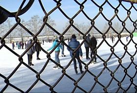 На катке Бурятского государственного университета многолюдно. Но ступить на его лед просто так нельзя – требуют специальную бумагу. Студентам – чтобы покататься, съемочной группе – чтобы поснимать