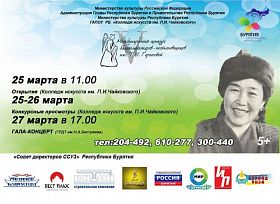 25 – 27 марта 2015 года Колледж искусств им. П.И. Чайковского проводит V Международный конкурс балетмейстеров-постановщиков им. Т.Е. Гергесовой, посвященный 100-летию со дня рождения балетмейстера и постановщика народных танцев, народной артистки Бурятской АССР, кавалера ордена Дружбы
