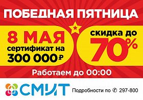 Праздник Победы в этом году для нас особенно примечателен, ведь он юбилейный. Исполняется 70 лет со дня великого события. В честь юбилея Победы компания «СМИТ» решила снова порадовать своих покупателей, устроив грандиозную Победную пятницу!