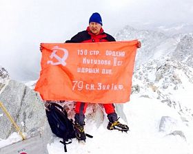 В рамках эстафеты «Победе-70» окинец поднял копию Знамени Победы на высочайшую вершину Восточных Саян