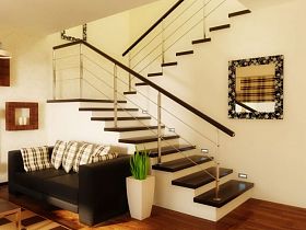 Что касается материала для ступеней, старайтесь не выбирать скользкие варианты – это мрамор, плитка или железо. Если этот выбор все же необходим по стилистике вашего помещения, то лучше подобрать специальные накладки из резины, коврового покрытия или дерева. Между тем, выбор материала для самой лестницы полностью зависит от ее конструктивного решения, места установки, условий эксплуатации и дизайнерской задумки. К примеру, деревянную лестницу не стоит устанавливать во влажных помещениях. Из-за влаги могут возникнуть нежелательные деформации, делающие лестницу небезопасной. Здесь лучше будут себя «чувствовать» металлические или бетонные конструкции.