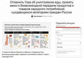 Петиция об отказе от уничтожения «санкционной еды» уже набрала боле 400 тысяч подписей