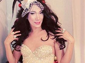 Певец учится ходить на каблуках и в коротких платьях с перьями в образе тайского ледибоя