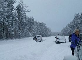 Обильное количество снега, выпавшего в минувшие сутки, затруднило проезд по трассе