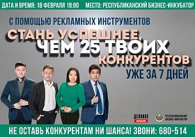 18 февраля в 18:00 в конференц-зале Республиканского Бизнес-инкубатора состоится мастер-класс на тему «С помощью рекламных инструментов стань успешнее, чем 25 твоих конкурентов уже за 7 дней»