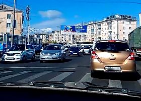 За несколько минут на проспекте 50-летия Октября образовалась гигантская пробка из-за остановившегося поперек дороги автобуса