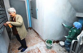 Городские власти вновь меняют покрытие возле центрального входа администрации