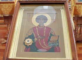 Капли выступили на нимбе святого Пантелеимона и на ложечке в его руках