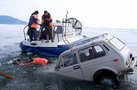 Автомобиль ушел под лед настолько быстро, что мужчина не смог среагировать