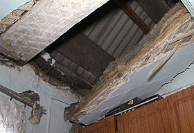 В ветхом жилье обрушился потолок, разбив технику и поломав мебель