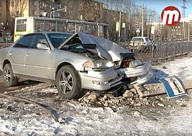 Беременная женщина за рулем «Хонды» врезалась в «Мазду», а водитель «Тойоты» снес фонарный столб