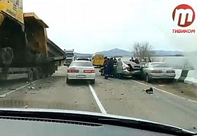 Грузовик протаранил «Тойоту», которая стояла на светофоре