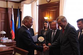 Председатель Народного Хурала Цырен-Даши Доржиев принял гостя из Румынии г-на Игната Мирон Демьяновича, председателя межпарламентской группы дружбы между Парламентом Румынии и Государственной Думой ФС РФ.