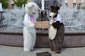 Сотрудники РАЛХ нарядившись животными беседовали с горожанами, попутно раздавая листовки, буклеты и детские раскраски