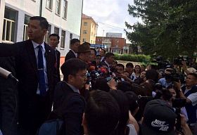 Лидер народной партии Миеогомбын Энхболд пришел на избирательный участок к 10 часам