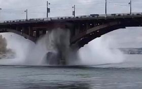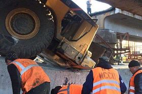При повреждении фермы находившийся на мосту транспорт упал в реку Черный Урюм