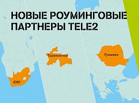 Tele2, альтернативный оператор мобильной связи, открывает роуминг в сетях Vodafone (Румыния), Tcell (Таджикистан) и MTN (ЮАР)