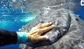 Заметив хищника, кит начал защищать ныряльщицу, укрывая ее плавниками
