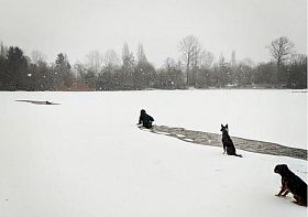 Она доплыла до собаки и вытащила ее на берег