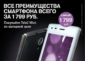 Tele2, альтернативный оператор мобильной связи, снижает стоимость брендированного смартфона Tele2 Mini более чем на 20%