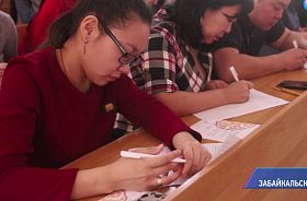 Участники писали под диктовку отрывок из эссе бурятского классика Доржи Эрдынеева