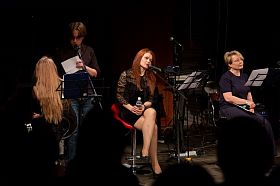 Поэтические произведения в исполнении актрис звучали под аккомпанемент электрогитары и авторскую музыку