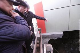 Ремонтные работы осложняются тем, что на месте повреждения перекрытия находится торговый павильон