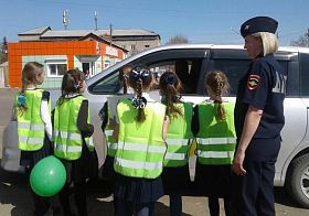 Дети дарили автомобилистам георгиевские ленты и читали стихи о подвигах советских солдат