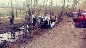 Водитель не справился с управлением, перевернулся и врезался в дерево