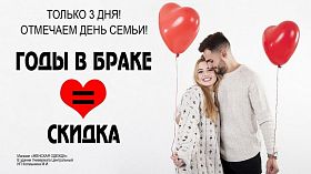 И в честь этого доброго, семейного праздника магазин «Женская одежда» в Универмаге «Центральный» дарит всем скидки, равные количеству лет, прожитых в браке*!