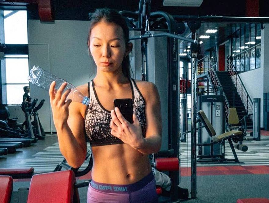 Девушки делают селфи с пластиковыми бутылками, рыбой и бутербродом