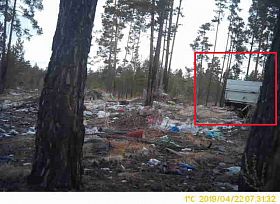 Помимо автомобиля нарушителей, камера запечатлела мусорную свалку в лесу