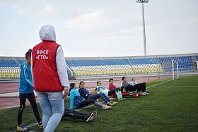 Спортсмены ежедневно упражняются на центральном стадионе города