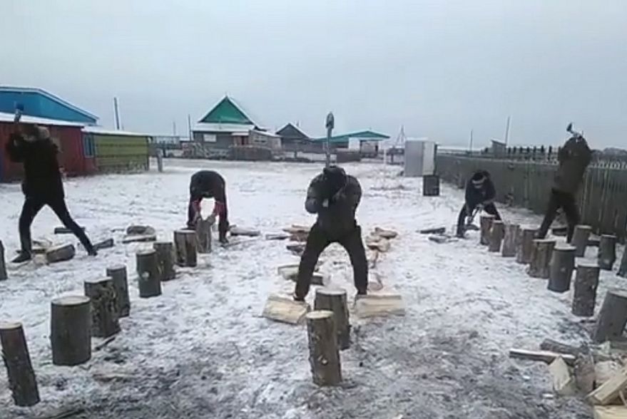 Жители республики соревнуются в разбивании чурок на скорость