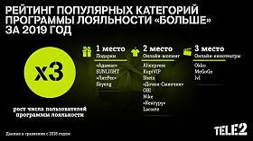 Tele2, альтернативный оператор мобильной связи, определил предпочтения пользователей программы лояльности «Больше» за 2019 год