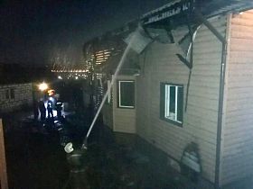 Пламя, охватившее двухэтажный коттедж, едва не перекинулось на соседние постройки