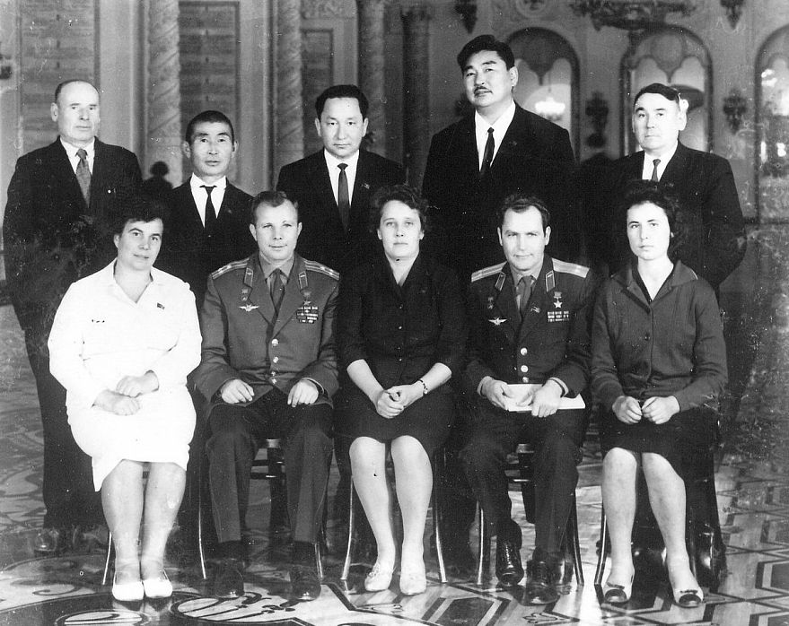 На снимках изображен легендарный летчик-космонавт вместе с Ларисой Сахьяновой и Лхасараном Линховоин