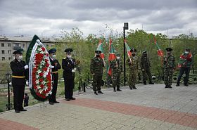 У памятника Николаю Петрову проходит торжественная церемония возложения венков и цветов в знак памяти пограничников, отдавших жизни при защите границы
