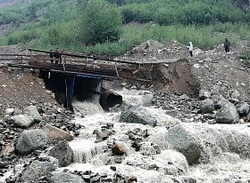Сильный ливень размыл дорогу к мосту в Ирокинде