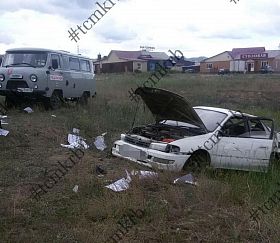 Toyota Carina выехала с дороги и перевернулась